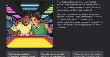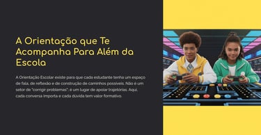 Ajuda a escola a comunicar a importância da orientação, das escolhas conscientes e dos hábitos que sustentam trajetórias.